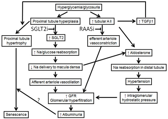 - Vallon, V.; Thomson, S.C. The tubular hypothesis of nephron filtration and diabetic kidney disease. Nat. Rev. Nephrol. 2020, 16, 317–336. [Google Scholar] [CrossRef]