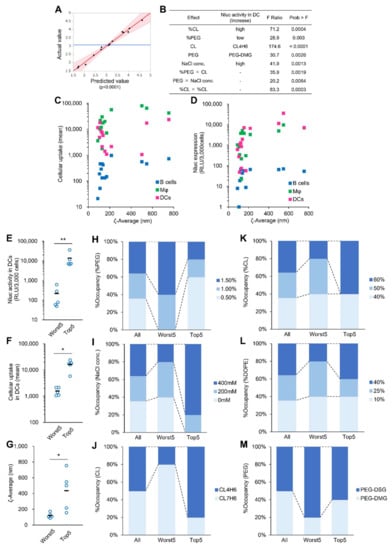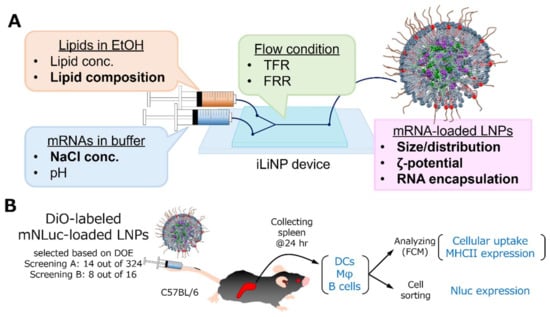 - Hashiba, A.; Toyooka, M.; Sato, Y.; Maeki, M.; Tokeshi, M.; Harashima, H. The use of design of experiments with multiple responses to determine optimal formulations for in vivo hepatic mRNA delivery. J. Control. Release 2020, 327, 467–476. [Google Scholar] [CrossRef]