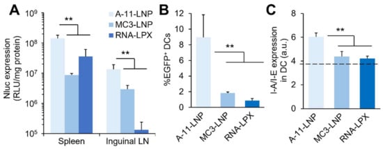 2.7. In Vivo Screening of RNA-Loaded LNPs