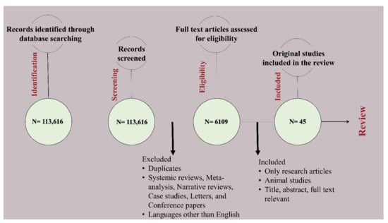After the primary screening, the available full-length articles were screened to obtain relevant studies about specified dressings which included animal experimentation. In this review, a total of 45 different studies were included, in which 22% is hydrogel dressings (n = 10), foam includes 7% (n = 3), sponge comprises of 18% (n = 8), films include 13% (n = 6), nanofibers comprise of 13% (n = 6), gauzes and plant extracts hold 9% (n = 4) and 18% (n = 8) respectively.
