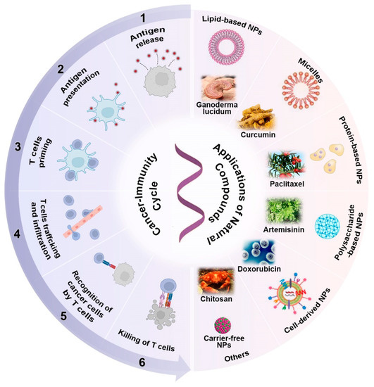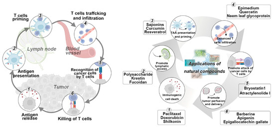 An overview of different steps of the immune response, delivery strategies, and biomedical applications of natural compounds for cancer immunotherapy.