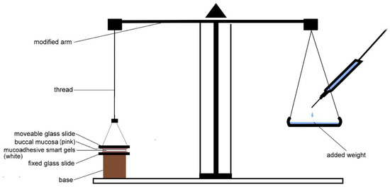 Modified physical balance for the estimation of ex vivo mucoadhesive strength as reported [16].