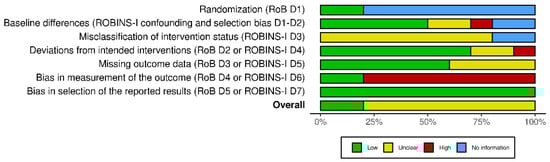 - Sterne, J.A.; Hernán, M.A.; Reeves, B.C.; Savović, J.; Berkman, N.D.; Viswanathan, M.; Henry, D.; Altman, D.G.; Ansari, M.T.; Boutron, I.; et al. ROBINS-I: A tool for assessing risk of bias in non-randomised studies of interventions. BMJ 2016, 355, i4919. [Google Scholar] [CrossRef] [PubMed]