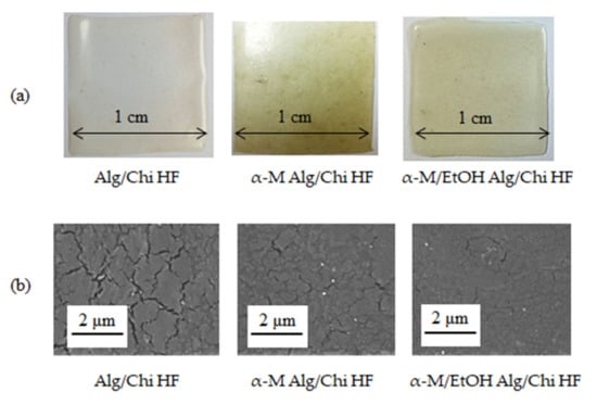 2.2.1. Preparation of Alg/Chi HF, α-M Alg/Chi HF, and α-M/EtOH Alg/Chi HF