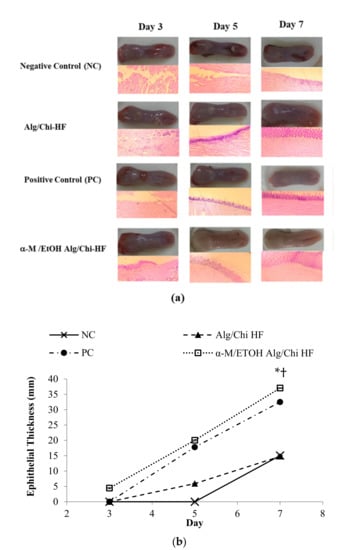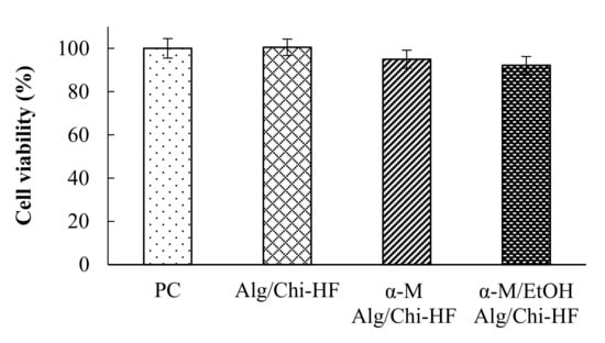 3.4. Characterization of Alg/Chi HF, α-M Alg/Chi HF, and α-M/EtOH Alg/Chi HF