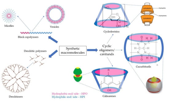 Sub-types of synthetic macromolecule-based supramolecular systems and their self-assembly structures (created with Biorender.com [accessed on 30 June 2022]).