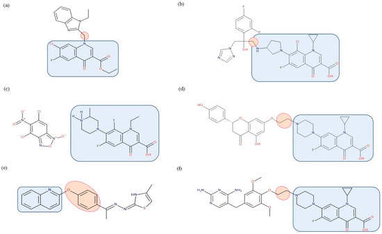Hybrids represent a particular class that could be obtained using FQNs as one of the antibiotic components. A hybrid antibiotic can be defined as two or more molecules or pharmacophores linked together, synthesized to exhibit a desired antimicrobial effect. Considering that the emergence of antibacterial resistance is better suppressed by combination therapy rather than monotherapy, it is hypothesized that through hybridization, additional benefits that were missing in individual molecules are obtained [7].