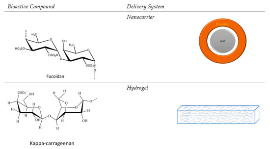 Summary of carrageenans and the delivery systems used for various bioactive properties valorization.