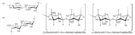 - Pangestuti, R.; Kurnianto, D. Green Seaweeds-Derived Polysaccharides Ulvan: Occurrence, Medicinal Value and Potential Applications. In Seaweed Polysaccharides. Isolation, Biological and Biomedical Applications; Venkatesan, J., Anil, S., Kim, S.K., Eds.; Elsevier: Oxford, UK, 2017; pp. 205–221. [Google Scholar] [CrossRef]