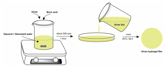 - Sulastri, E.; Zubair, M.S.; Lesmana, R.; Mohammed, A.F.A.; Wathoni, N. Development and Characterization of Ulvan Polysaccharides-Based Hydrogel Films for Potential Wound Dressing Applications. Drug Des. Devel. Ther. 2021, 15, 4213–4226. [Google Scholar] [CrossRef]