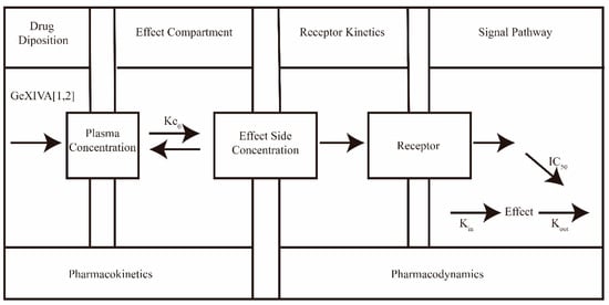 All PK-PD analyses were conducted with a Phoenix model. An indirect response (IDR) model with an effect compartment was used to link the concentrations of GeXIVA[1,2] to the allodynia relief effect (PWT). An assumption was made during the modelling that GeXIVA[1,2] has the same PK profile in both normal rats and oxaliplatin-induced neuropathic pain model rats. The PK-PD modelling and validation were executed in four steps based on rat data.