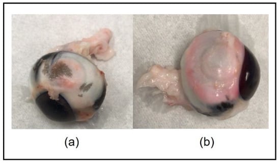 - Nicoli, S.; Ferrari, G.; Quarta, M.; Macaluso, C.; Govoni, P.; Dallatana, D.; Santi, P. Porcine sclera as a model of human sclera for in vitro transport experiments: Histology, SEM, and comparative permeability. Mol. Vis. 2009, 15, 259–266. [Google Scholar]