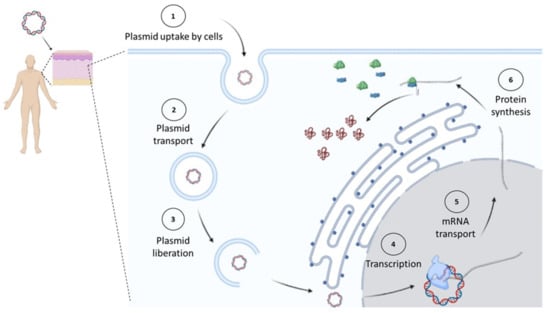 - Ledwith, B.J.; Manam, S.; Troilo, P.J.; Barnum, A.B.; Pauley, C.J.; Griffiths, T.G.; Harper, L.B.; Beare, C.M.; Bagdon, W.J.; Nichols, W.W. Plasmid DNA Vaccines: Investigation of Integration into Host Cellular DNA Following Intramuscular Injection in Mice. Intervirology 2000, 43, 258–272. [Google Scholar] [CrossRef]