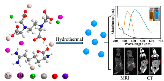 - Zhao, Y.; Hao, X.; Lu, W.; Wang, R.; Shan, X.; Chen, Q.; Sun, G.; Liu, J. Facile preparation of double rare earth-doped carbon dots for MRI/CT/FI multimodal imaging. ACS Appl. Nano Mater. 2018, 1, 2544–2551. [Google Scholar] [CrossRef]