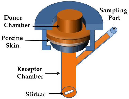 In vitro percutaneous permeation studies were carried out using unjacketed Franz diffusion cells; see Figure 1, with an orifice diameter of 0.9 cm (area of exposure 0.64 cm2), a donor chamber volume of 1 mL, and a receptor chamber volume of 12 mL.