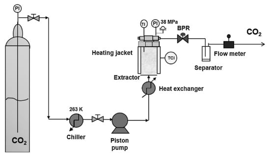 Scheme of the equipment used for supercritical fluid extraction of emulsions (SFEE). Reprinted with permission from Ref. [39]. Copyright 2016, Elsevier.
