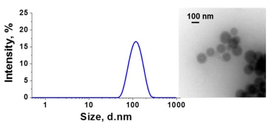 TEM images of liposomes were obtained in the Interdisciplinary Center for Analytical Microscopy of KFU, using a Hitachi HT7700 Exalens microscope (Tokyo, Japan). The images were acquired at an accelerating voltage of 100 kV. Before the study, 5 µL of the suspension was placed on a Formvar/carbon coated 3 mm copper grid, drying was performed at room temperature. After drying, the grid was placed in a transmission electron microscope [].