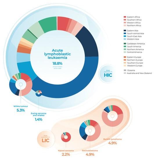 - Steliarova-Foucher, E.; Colombet, M.; Ries, L.A.G.; Moreno, F.; Dolya, A.; Bray, F.; Hesseling, P.; Shin, H.Y.; Stiller, C.A.; IICC-3 Contributors. International incidence of childhood cancer, 2001-10: A population-based registry study. Lancet Oncol. 2017, 18, 719–731. [Google Scholar] [CrossRef]