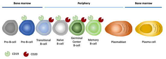 - Tedder, T.F.; Engel, P. CD20: A regulator of cell-cycle progression of B lymphocytes. Immunol. Today 1994, 15, 450–454. [Google Scholar] [CrossRef]