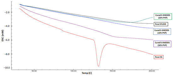 DSC chromatograms of pure CN and cured S-SNEDDS.