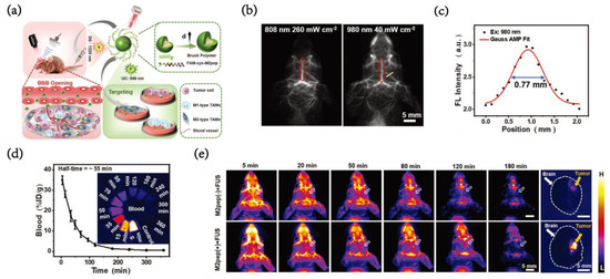- Zhu, H.; Ren, F.; Wang, T.; Jiang, Z.; Sun, Q.; Li, Z. Targeted Immunoimaging of Tumor-Associated Macrophages in Orthotopic Glioblastoma by the NIR-IIb Nanoprobes. Small 2022, 18, 2202201. [Google Scholar] [CrossRef]