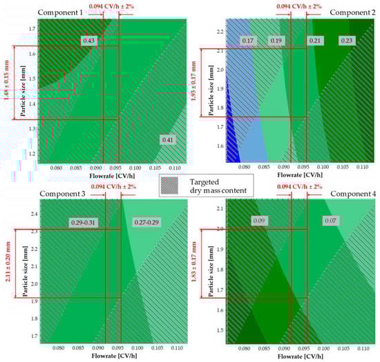 Design spaces for components 1–4 for varying flow rates and particle sizes [].