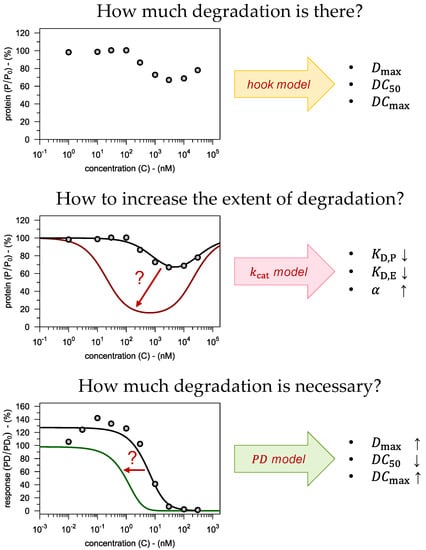 It has been widely accepted that the hook effect constitutes a characteristic feature of the PROTAC mechanism of action [25,26]. Yet, when it comes to modeling concentration-degradation profiles, researchers still default to the model which, as it does not account for it [27,28,29,30], carries several disadvantages.