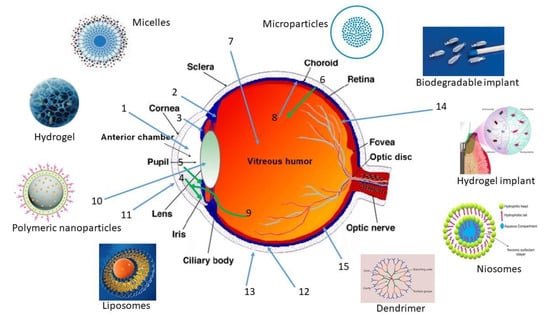 - Barar, J.; Aghanejad, A.; Fathi, M.; Omidi, Y. Advanced drug delivery and targeting technologies for the ocular diseases. BioImpacts 2016, 6, 49–67. [Google Scholar] [CrossRef] [PubMed]