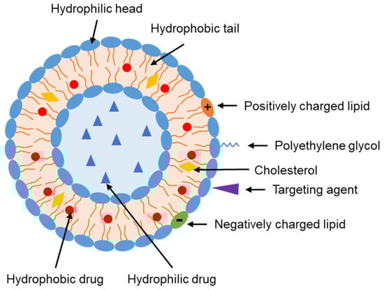 Liposomes can encapsulate different types of nucleic acids, including DNA, messenger ribonucleic acid (mRNA), and small interfering RNA (siRNA), in their aqueous core. Liposomes and lipid nanoparticles are the most widely used non-viral platforms for gene delivery [128]. Cationic liposomes are generally used to enhance the encapsulation of negatively charged nucleic acids [17].