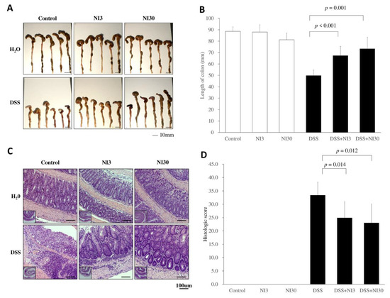 - Chassaing, B.; Aitken, J.D.; Malleshappa, M.; Vijay-Kumar, M. Dextran sulfate sodium (DSS)-induced colitis in mice. Curr. Protoc. Immunol. 2014, 104, 15.25.11–15.25.14. [Google Scholar] [CrossRef] [PubMed]