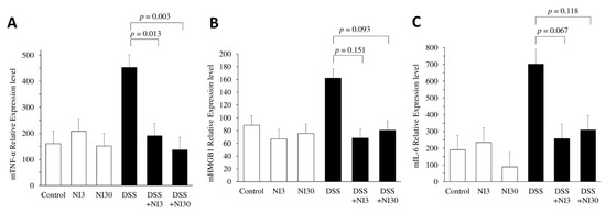 2.5. Evaluation of Pro-Inflammatory Cytokines Using Real-Time PCR