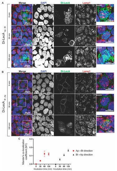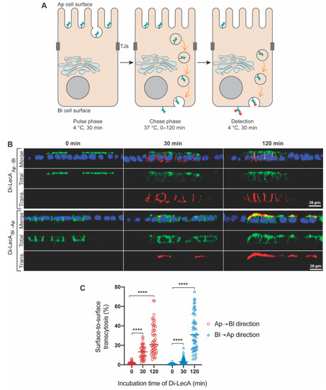 3.1. Di-LecA Undergoes Faster Transcytosis Than Tetra-LecA
