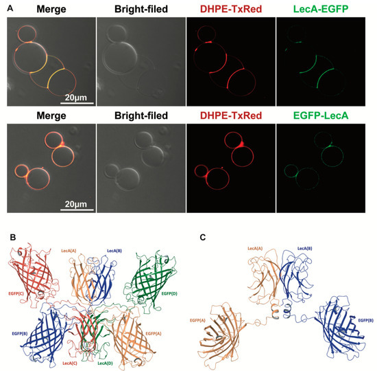 - Sych, T.; Omidvar, R.; Ostmann, R.; Schubert, T.; Brandel, A.; Richert, L.; Mely, Y.; Madl, J.; Römer, W. The Bacterial Lectin LecA from P. Aeruginosa Alters Membrane Organization by Dispersing Ordered Domains. bioRxiv 2022. 2022.04.17.488572. [Google Scholar] [CrossRef]