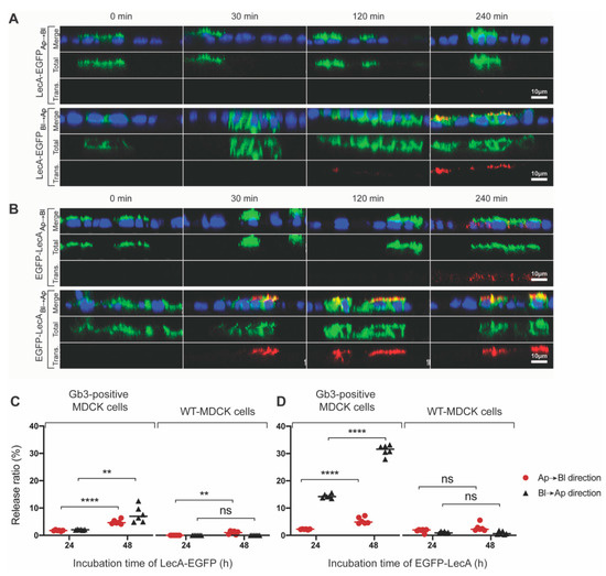 3.5. Transcytosis of Model LecA Fusion Proteins