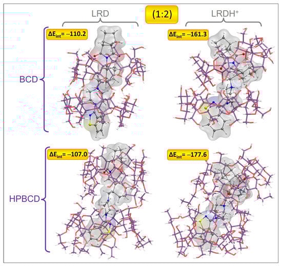 Eint = [cyclodextrin-LRD-cyclodextrin] − [LRD-cyclodextrin + cyclodextrin]