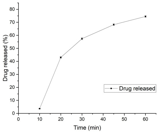 XRD patterns for the drug-loaded ODMTs (crushed into fine powders with a mortar and a pestle) were plotted based on the data collected via a MiniFlex 600 diffractometer (Rigaku, Austin, TX, USA) supplied with Cu-Kα radiation (λ = 1.5418 Å) at 40 kV, 15 mA, over the 2θ range from 3° to 40° and at a speed of 5°/min. The exported data were plotted using the OriginPro 2021(OriginLab Corporation, Northampton, MA, USA).