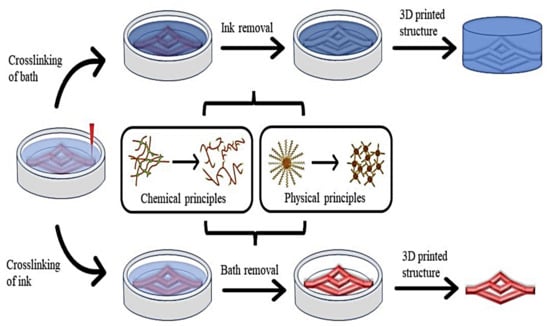 Diagrammatic representation of applications of biomaterials centered on physio-chemical cross-linking principles. Reprinted with permission from [137]. Copyright 2022 MDPI. Distributed under Creative Commons Attribution—based license (CCBY 4.0).