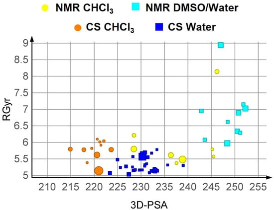 - Danelius, E.; Poongavanam, V.; Peintner, S.; Wieske, L.H.E.; Erdélyi, M.; Kihlberg, J. Solution Conformations Explain the Chameleonic Behaviour of Macrocyclic Drugs. Chem. A Eur. J. 2020, 26, 5231–5244. [Google Scholar] [CrossRef]