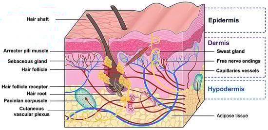 Schematic representation of human skin layers. Image reprinted with permission from [].