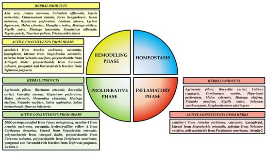 3. Herbal Products and Their Active Constituents Used for Diabetic Wound Healing