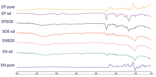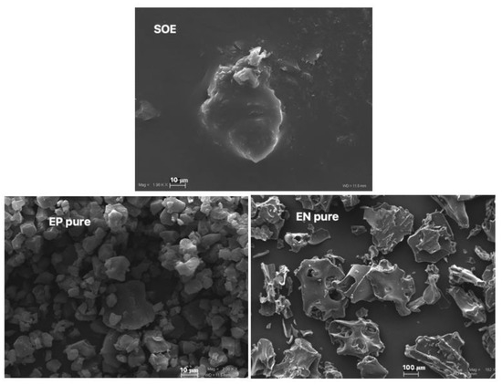 3.2.1. Characteristics of Spray-Dried SOE (SOE sd) and Blank Microparticles (EN sd and EP sd) with Respect to Raw Materials
