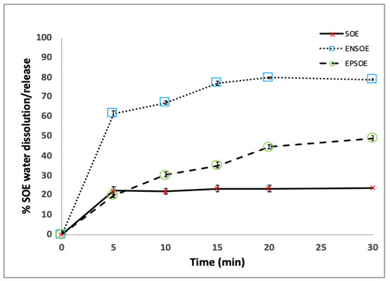 3.2.2. Characterization of EN- and EP-Based Microparticles Carrying SOE (EPSOE and ENSOE)
