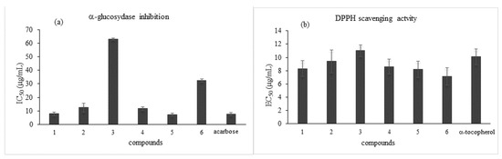 | AAC% a,b | DPPH Assay EC50 a,c | α-Glucosidase IC50 a,c | ||||||