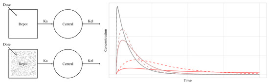 - Savic, R.M.; Jonker, D.M.; Kerbusch, T.; Karlsson, M.O. Implementation of a transit compartment model for describing drug absorption in pharmacokinetic studies. J. Pharmacokinet. Pharmacodyn. 2007, 34, 711–726. [Google Scholar] [CrossRef]