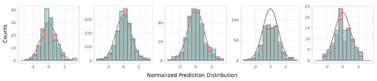 Prediction-corrected VPC plots reveal that all of the models reasonably explained the respective observation data. In the absorption phases that included fractal kinetics, the observations were mostly better covered by the middle range of the prediction intervals. In Model Cases 1 and 5, the NPDEs of the fractal models were more normally distributed than in the models without fractal kinetics. The other model cases showed similar distribution patterns. When combined with the numerical NPDE results, the prediction error tendency of the models was more satisfactory for conditions of normal distribution. Prediction-corrected VPC and NPDE results are shown in Figure 5 and Figure 6.