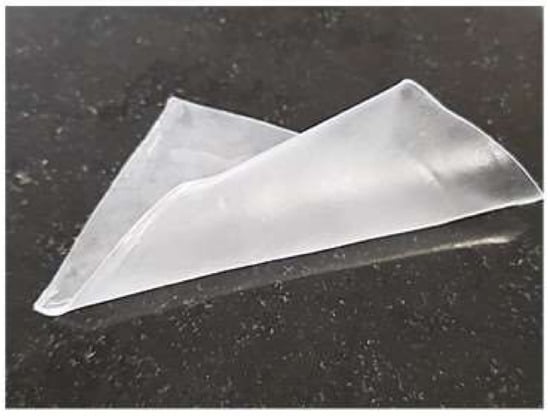 The film was removed out of the mold and then evaluated for flexibility by being bent, rolled up, and twisted. The film was considered flexible if it could be bent easily and remained intact without breaking or cracking (Figure 2). The film’s flexibility was divided into three categories: