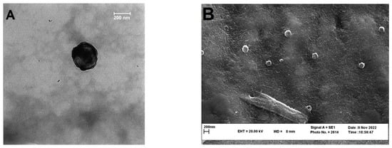 In order to observe the morphology of the selected nanoparticles (nanoparticles with 1:10 drug:chitosan) transmission electron microscopy (TEM) (Jeol JEM-1400, JEOL Ltd.; Tokyo, Japan) was employed. A drop of the aqueous dispersion of the washed nanoparticles was deposited in a mesh copper grid and air-dried at room temperature. Then, the grid was subjected to a 60 kV acceleration voltage.