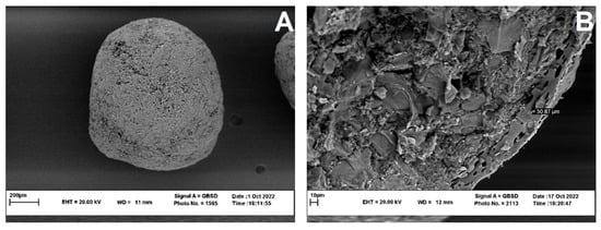 The mechanical characteristics of BCNP and CP were examined by testing twenty pellets in the size range of 850–1180 μm using a Material Testing Machine (Hounsfield, H50KS, London, England). Force–displacement graphs were prepared by a computer program connected to the device (Hounsfield, QMAT, London, England). The 1 kN load cell was set up at a moving speed of 1 mm/min to determine the pellet crushing strengths and elastic modulus.