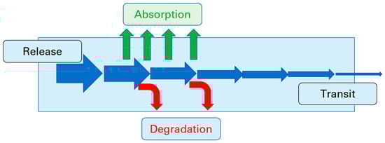 The transport rate across the intestinal epithelium depends on the exposed surface area, the drug concentration in the gut lumen and active and passive transport parameters. Peff can, thus, be determined, for example, via perfusion in gut segments, either preclinically or clinically, according to the following equation [24]: