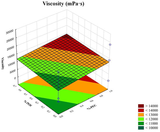 Three-dimensional (3D) response surface diagram of viscosity vs. PEC and POS concentrations.
